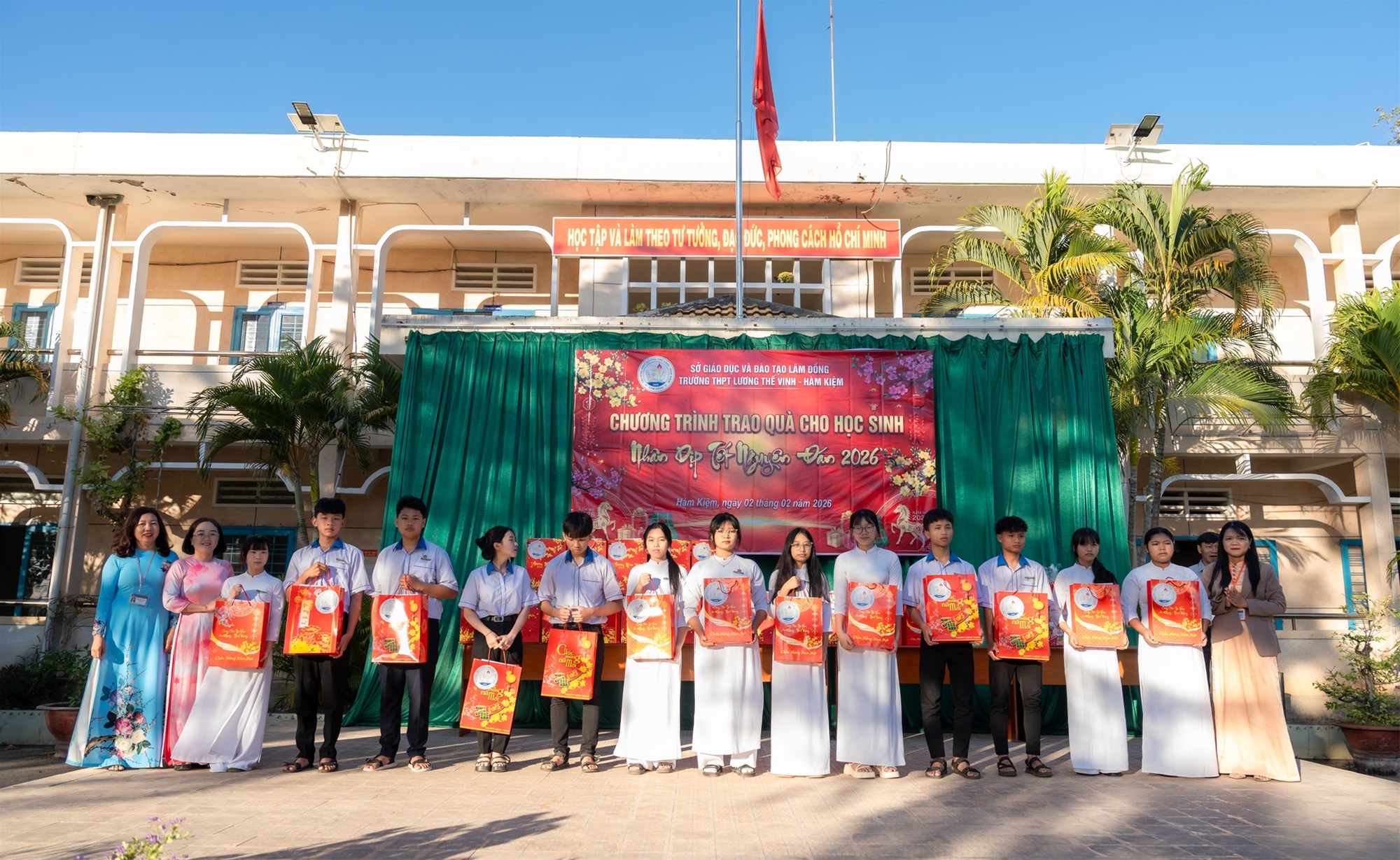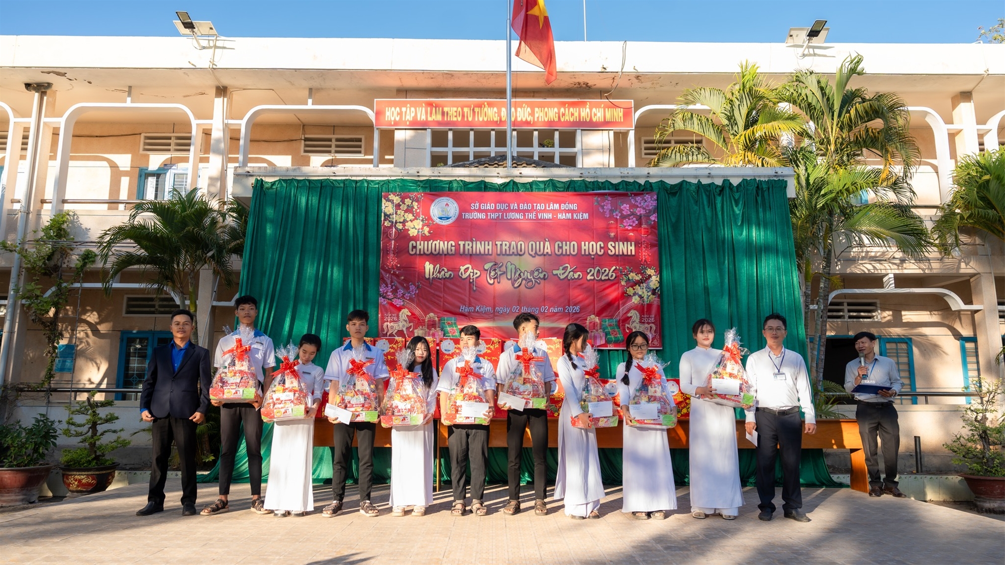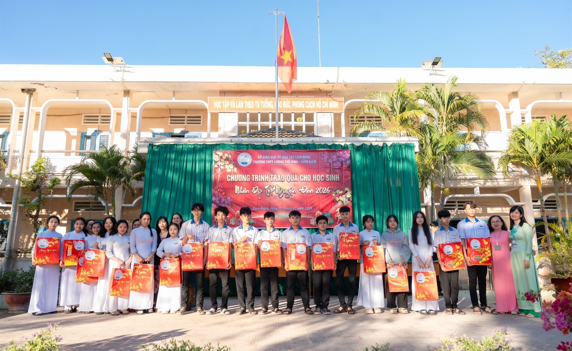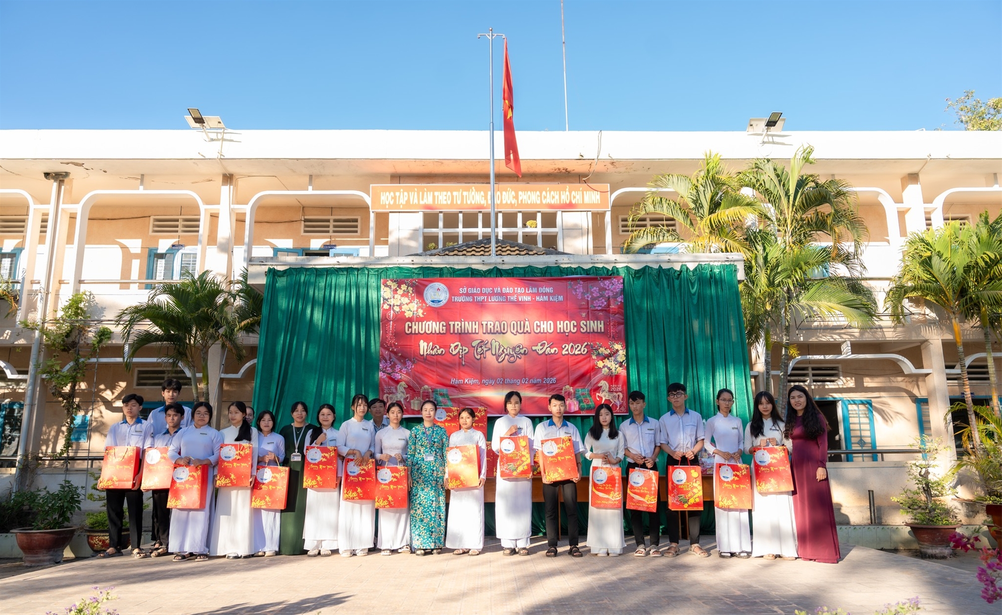 Sáng ngày 02/02/2026, trường THPT Lương Thế Vinh - Hàm Kiệm đã tổ chức chương trình để trao các phần quà Tết cho các em học sinh của trường nhân dịp Tết Nguyên đán 2026.