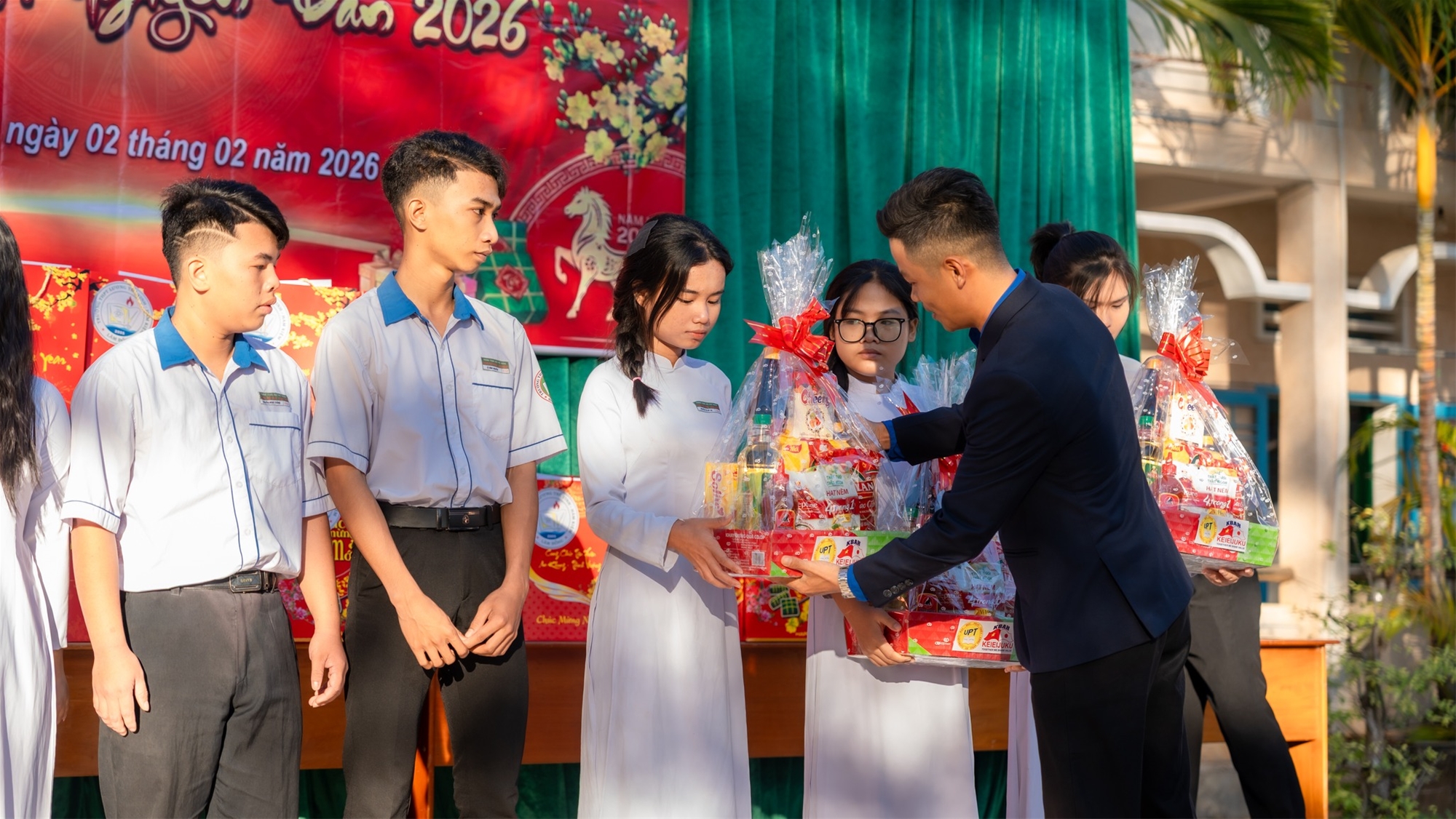 Thông qua chương trình đầy ý nghĩa này đã trao 51 phần quà Tết cho các em học sinh, mỗi suất trị giá 500.000 đồng tiền mặt cùng với quà. Những phần quà tuy nhỏ về vật chất, nhưng chứa đựng niềm tin yêu và sự kỳ vọng lớn lao của thầy cô và xã hội. Hy vọng rằng, các em sẽ luôn giữ vững ý chí, mạnh mẽ và tự tin vượt qua mọi khó khăn để chinh phục những đỉnh cao tri thức. Những phần quà thể hiện sự quan tâm của nhà trường, của xã hội và mong muốn các em và gia đình sẽ đón một cái Tết thật đầm ấm, an vui và tràn đầy hy vọng./.
