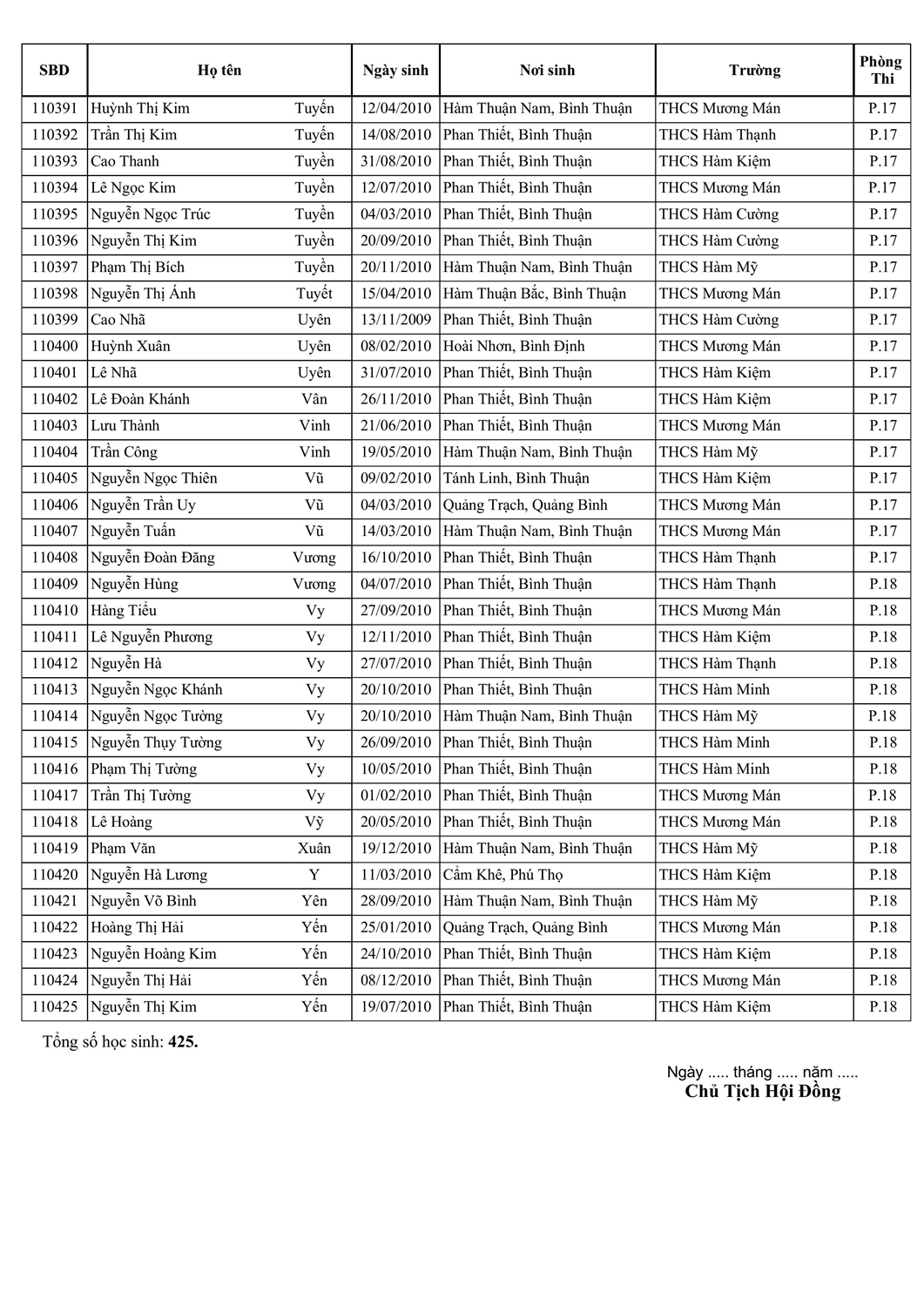 *Tổng số thí sinh dự thi: 425 thí sinh