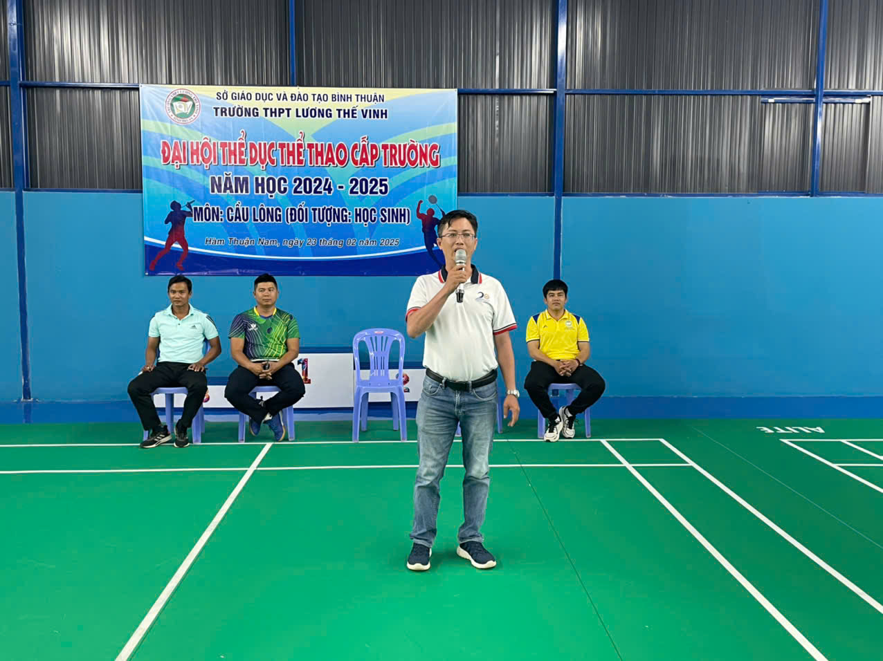 Năm nay, môn cầu lông có các nội dung thi đâu: đơn nam, đơn nữ, đôi nam, đôi nữ. Đến dự và phát biểu đại hội TDTT Thầy Huỳnh Trung Đông - Phó bí thư Đảng uỷ, Phó hiệu trưởng nhà trường đã gửi lời động viên đến tất cả các VĐV tham dự giải đấu, hi vọng qua giải đấu các học sinh sẽ tiếp tục ra sức tập luyện để nâng cao thành tích của nhà trường trong HKPĐ sắp tới.