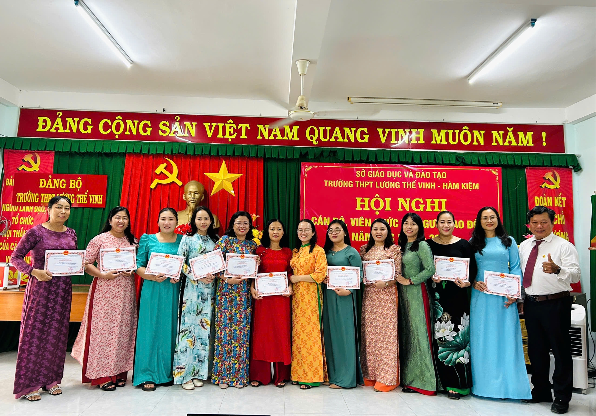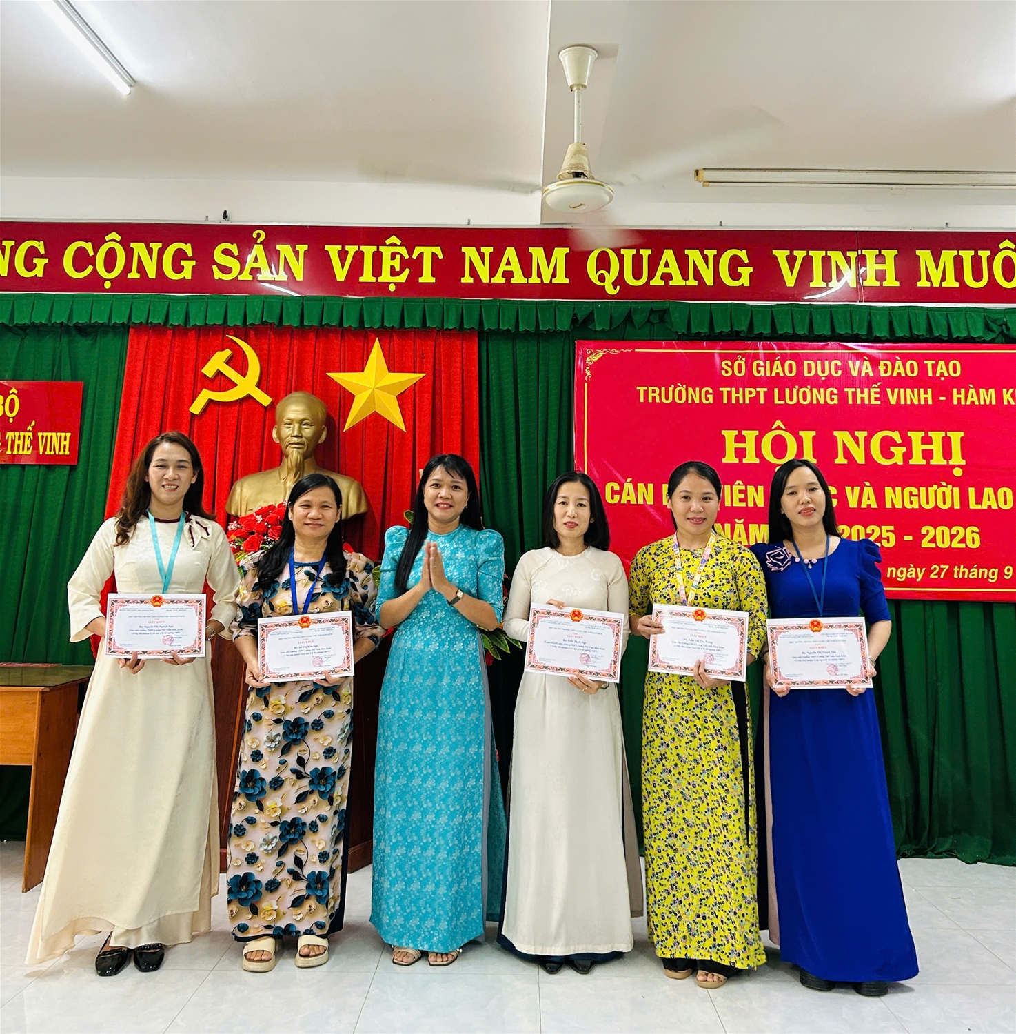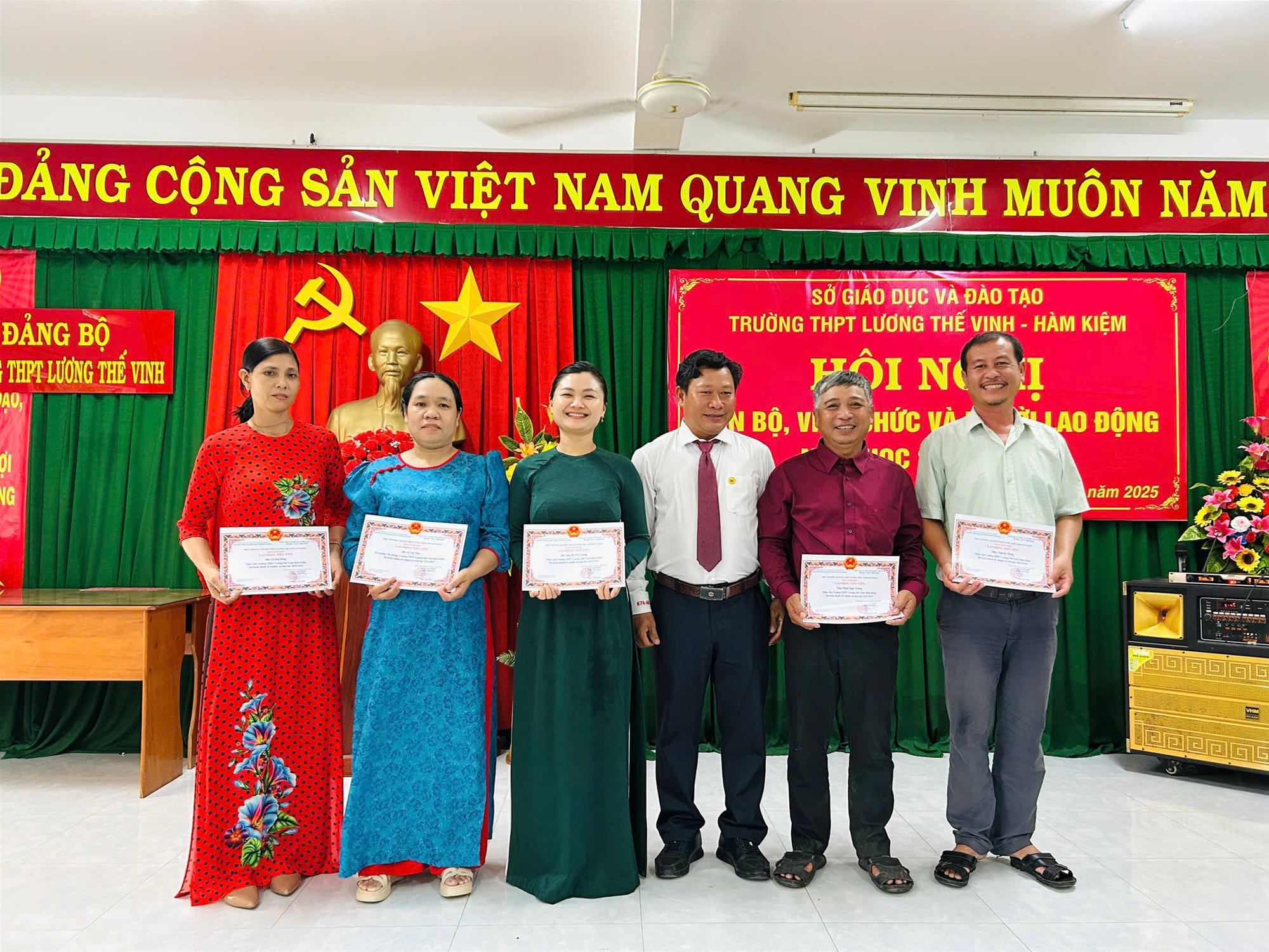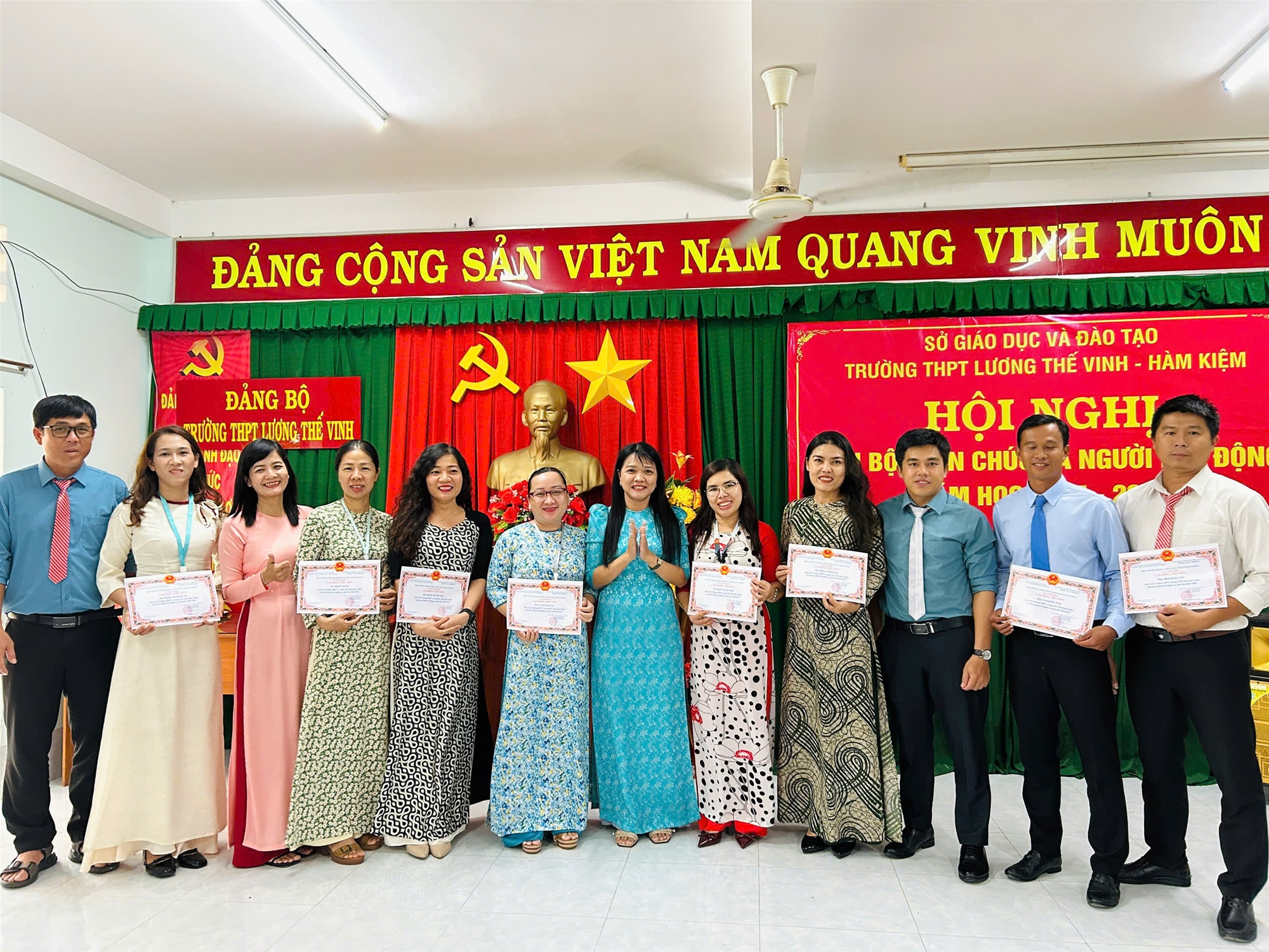 Chiều ngày 27/9/2025, Trường THPT Lương Thế Vinh – Hàm Kiệm đã long trọng tổ chức Hội nghị Cán bộ – Viên chức – Người lao động năm học 2025-2026. Hội nghị có sự tham dự của toàn thể cán bộ, giáo viên, nhân viên nhà trường trong không khí trang trọng, dân chủ và đoàn kết. Đây là dịp quan trọng để tập thể sư phạm nhìn lại kết quả đạt được trong năm học vừa qua, thẳng thắn chỉ ra hạn chế, đồng thời thống nhất phương hướng, nhiệm vụ và các chỉ tiêu cụ thể cho năm học mới.