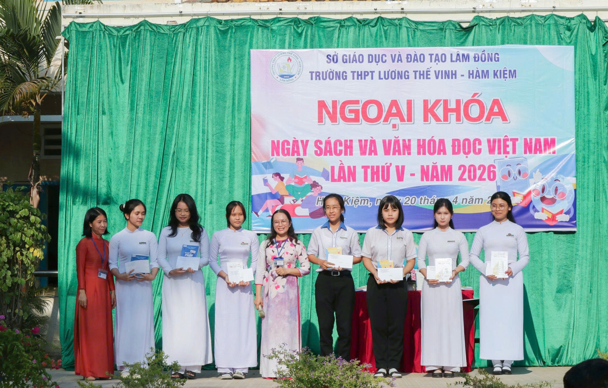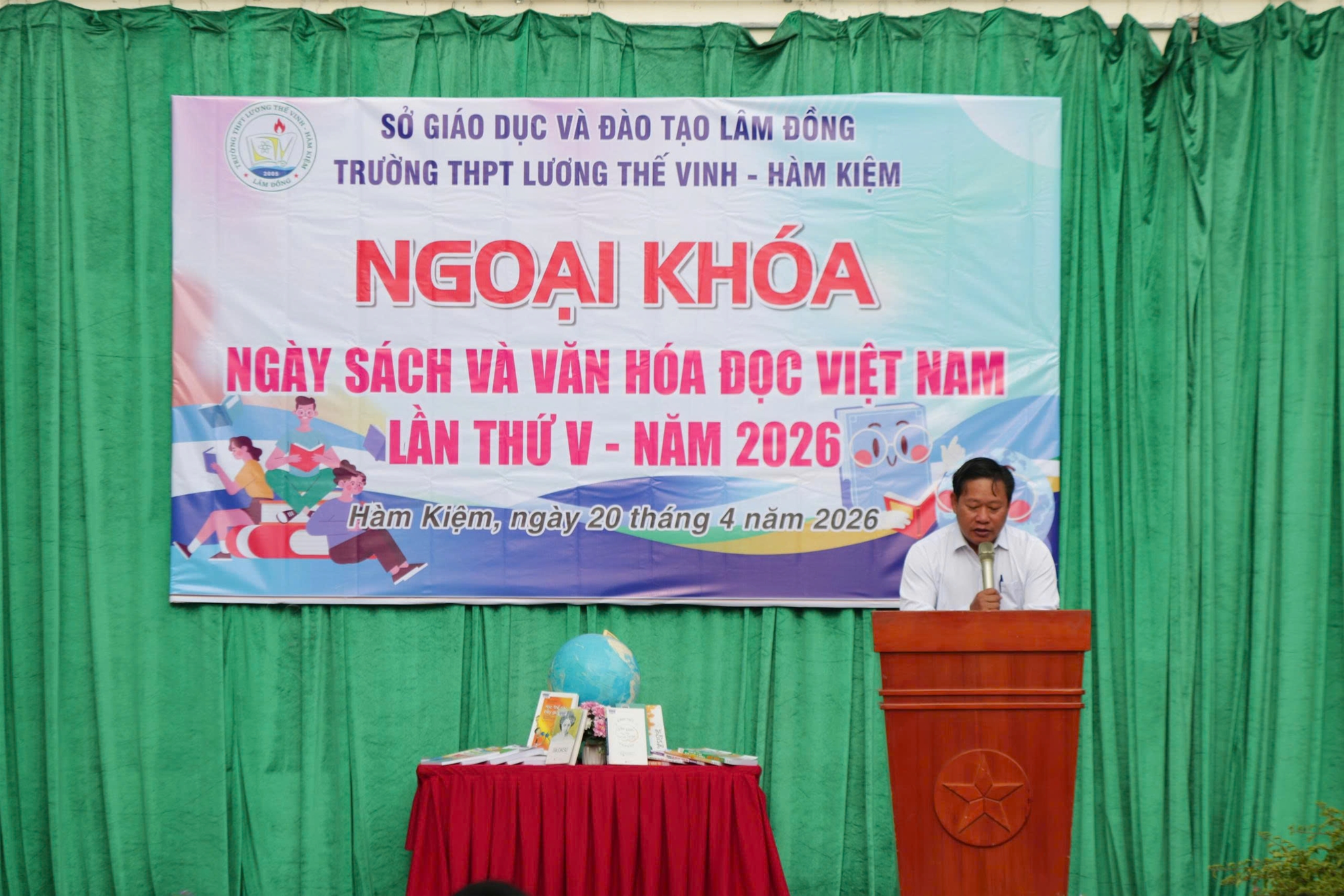 Thực hiện Kế hoạch số 109/KH-SGDĐT ngày 03/4/2026 của Sở Giáo dục và Đào tạo tỉnh Lâm Đồng về việc tổ chức Ngày Sách và Văn hóa đọc Việt Nam năm 2026 trong trường học; Thực hiện kế hoạch số 39/KH-THPT.LTV-HK ngày 6/4/2026 về việc Tổ chức ngày sách Việt Nam. Trường THPT Lương Thế Vinh - Hàm Kiệm đã tổ chức chương trình ngoại khóa nhằm kỉ niệm “Ngày sách và văn hóa đọc Việt Nam” - lần V năm 2026.