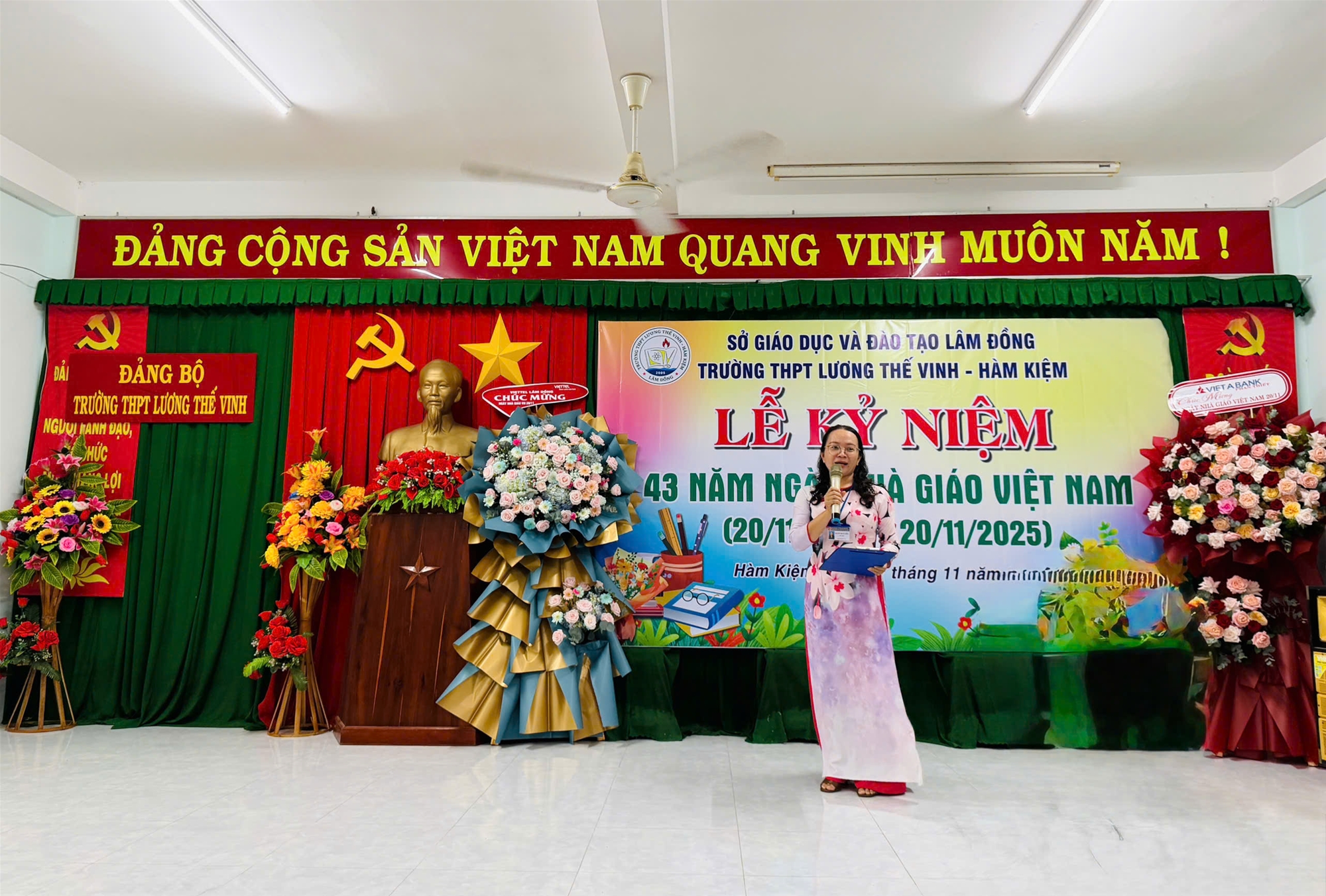 Trong phần phát biểu tại buổi lễ, Thầy Hiệu trưởng Phạm Thi Nhân gửi lời chúc mừng và ghi nhận tâm huyết của đội ngũ nhà giáo nhà trường, đồng thời mong muốn mỗi thầy cô tiếp tục giữ vững ngọn lửa nghề. Nhân dịp này, nhà trường cũng trao học bổng cho học sinh có nhiều nỗ lực vươn lên trong học tập, thắp lên niềm tin và động lực để các em vượt qua khó khăn, tiếp tục vươn lên trong cuộc sống.